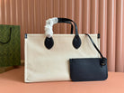 Gucci Medium Tote Bag Blue White Leather Canvas 248186