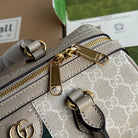 OPHIDIA SMALL TOP HANDLE BAG 26 IN BEIGE WHITE CANVAS AND OAT CALFSKIN TRIM GOLD HARDWARE