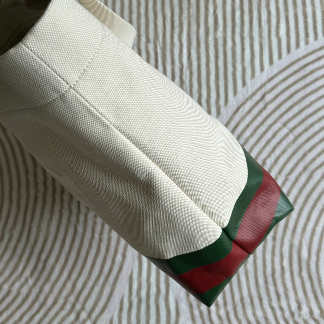 TOTE BAG 40 IN WHITE CANVAS WITH WEB TRIM AND EMBOSSED LOGO