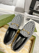 MEN'S LOAFER WITH HORSEBIT IN BLACK MIX WHITE MONOGRAM JACQUARD FABRIC