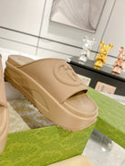 GC 25 Interlocking G 50mm Slide Sandal Beige Cowhide 292384