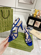 GG CRYSTAL HIGH HEEL SANDAL AZURE CALFSKIN SPECIAL