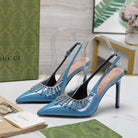 GG CRYSTAL HIGH HEEL SANDAL CERULEAN LAMBSKIN