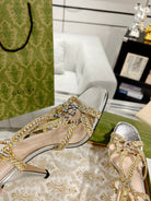 GG CRYSTAL HIGH HEEL SANDAL SLIVER CALFSKIN SPECIAL