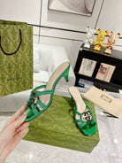 GG CRYSTAL MID - HEEL JADE GREEN CALFSKIN