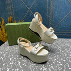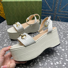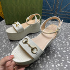 GG HORSEBIT FLATFORM SANDAL GLOSSY WHITE CALFSKIN