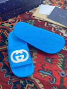 GG INTERLOCKING G SLIDE SANDAL BRIGHT BLUE RUBBER