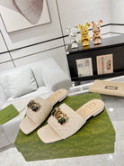 GG SPARKLE CRYSTAL SLIDE SANDAL CREAM CALFSKIN