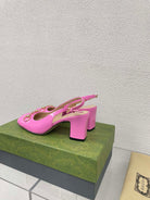 GG WOMEN'S HORSEBIT SLINGBACK 75MM IN FUSICA PINK CALFSKIN