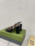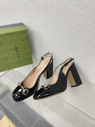 GG WOMEN'S HORSEBIT SLINGBACK 95MM IN BLACK CALFSKIN