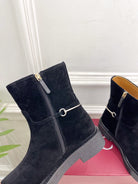 Gucci 25𝐬𝐬 horsebit ankle boots black suede 435374