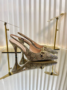 GC Crystal Horsebit Slingback 100mm Beige mix Ebony Canvas lambskin 294620