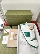 GG SCREENER SNEAKER WHITE AND DARK GREEN CALFSKIN