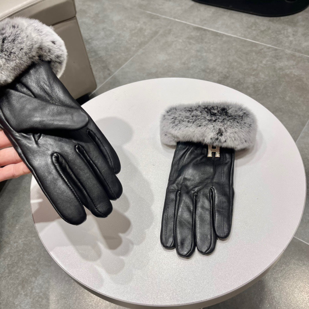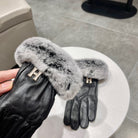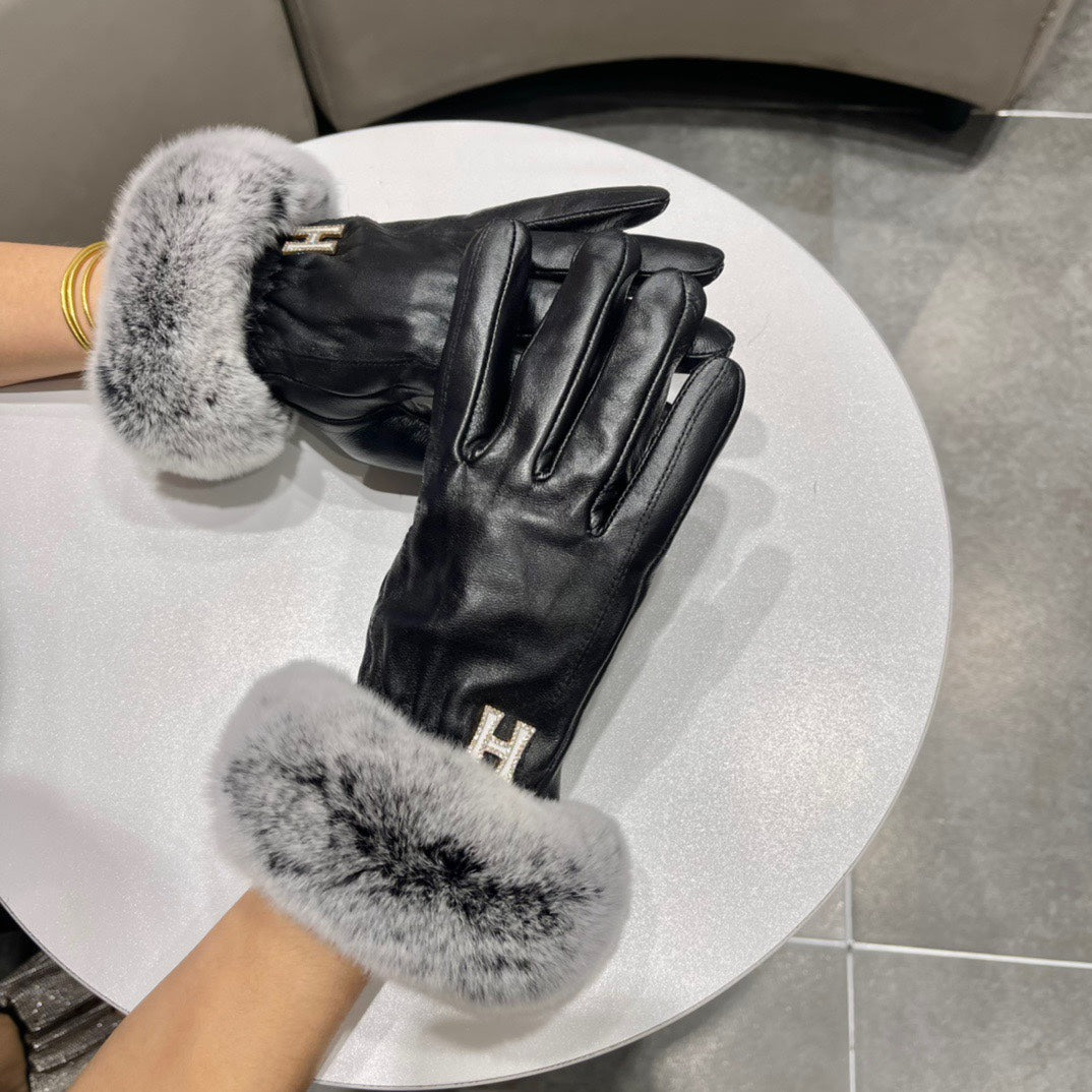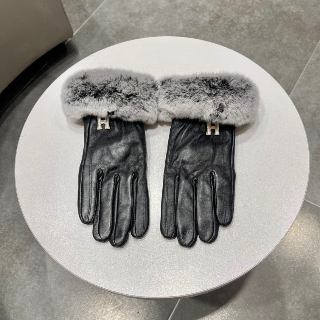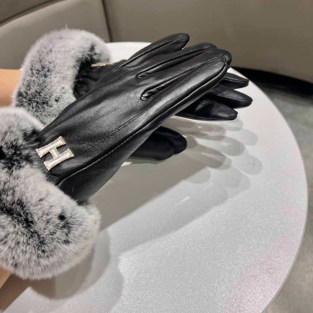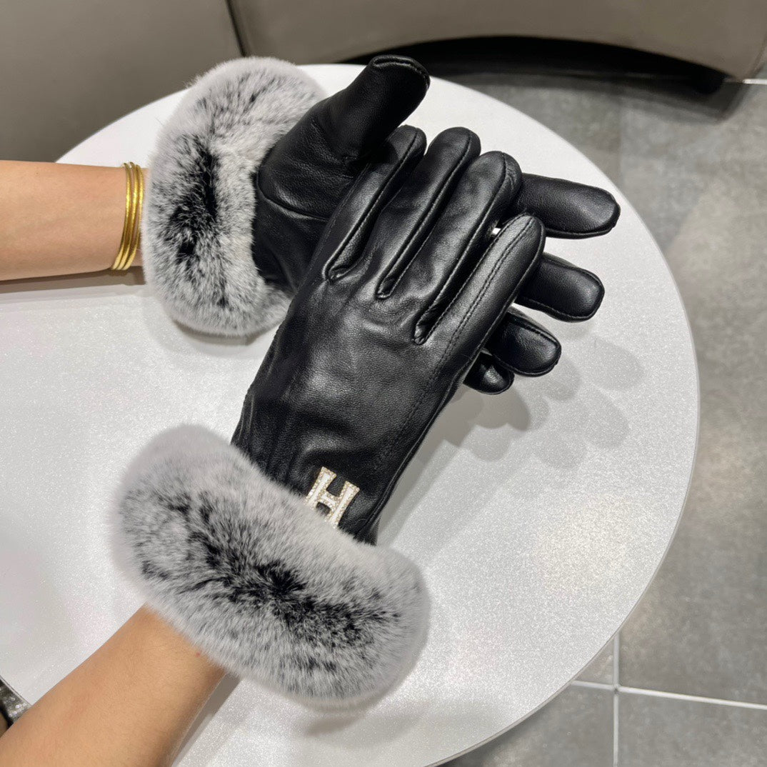 HM Glove In Black Lambskin With Rabbit Fur Lining 112327