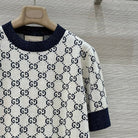 Gucci 2025 Knitted Round Neck Short-sleeved Top Blue Gray Cotton