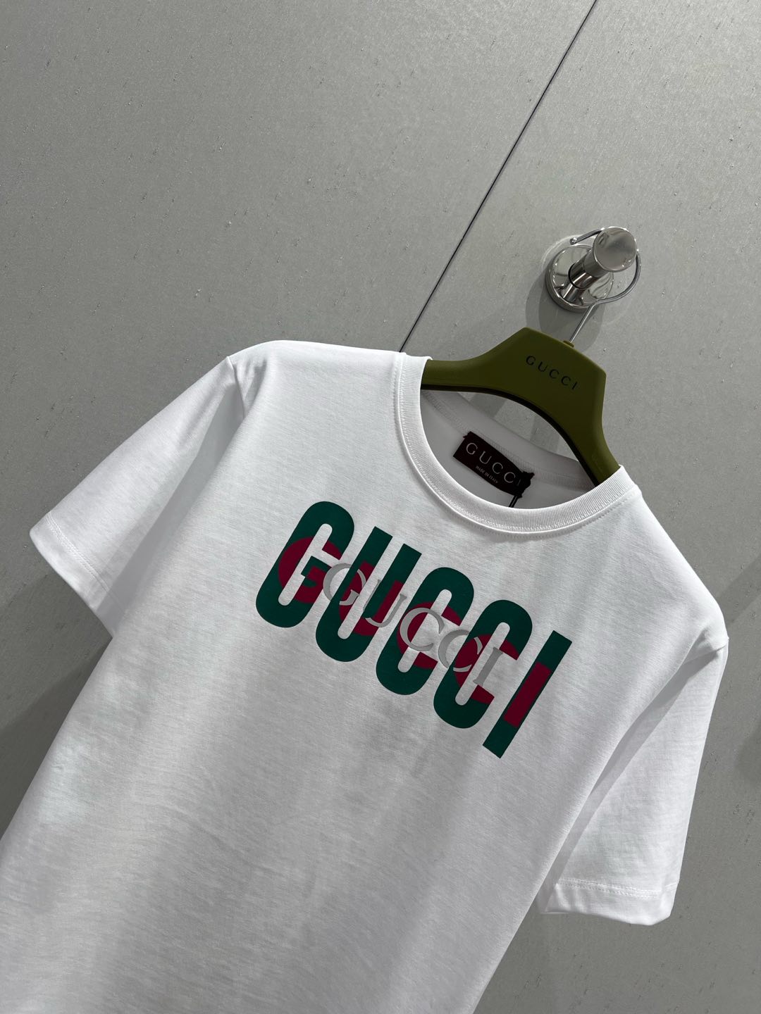 Gucci 2025 Print Short Sleeve T-shirt White Green Red Cotton