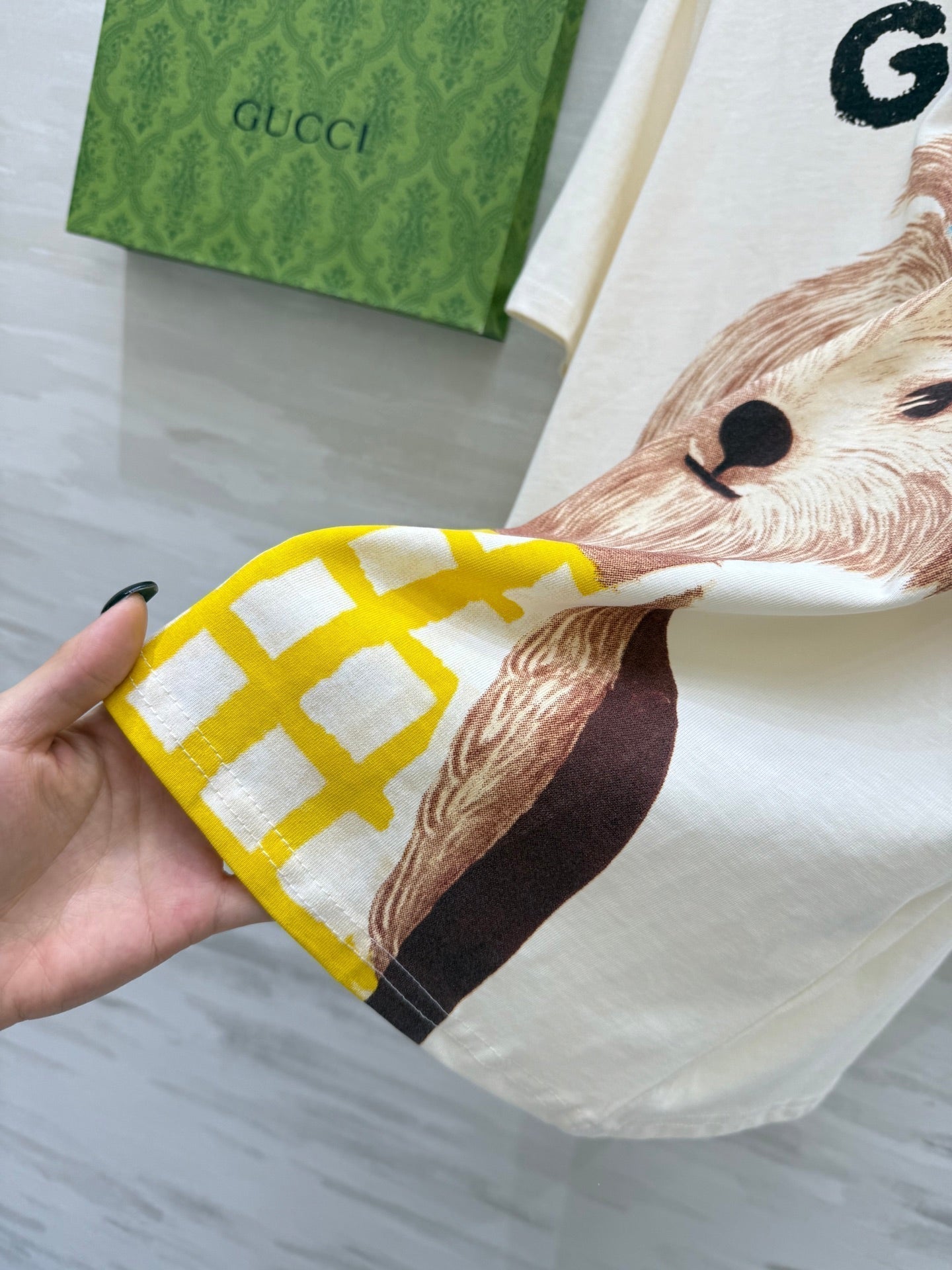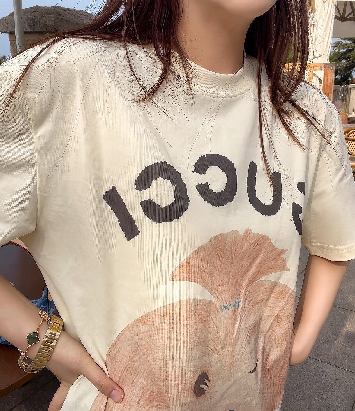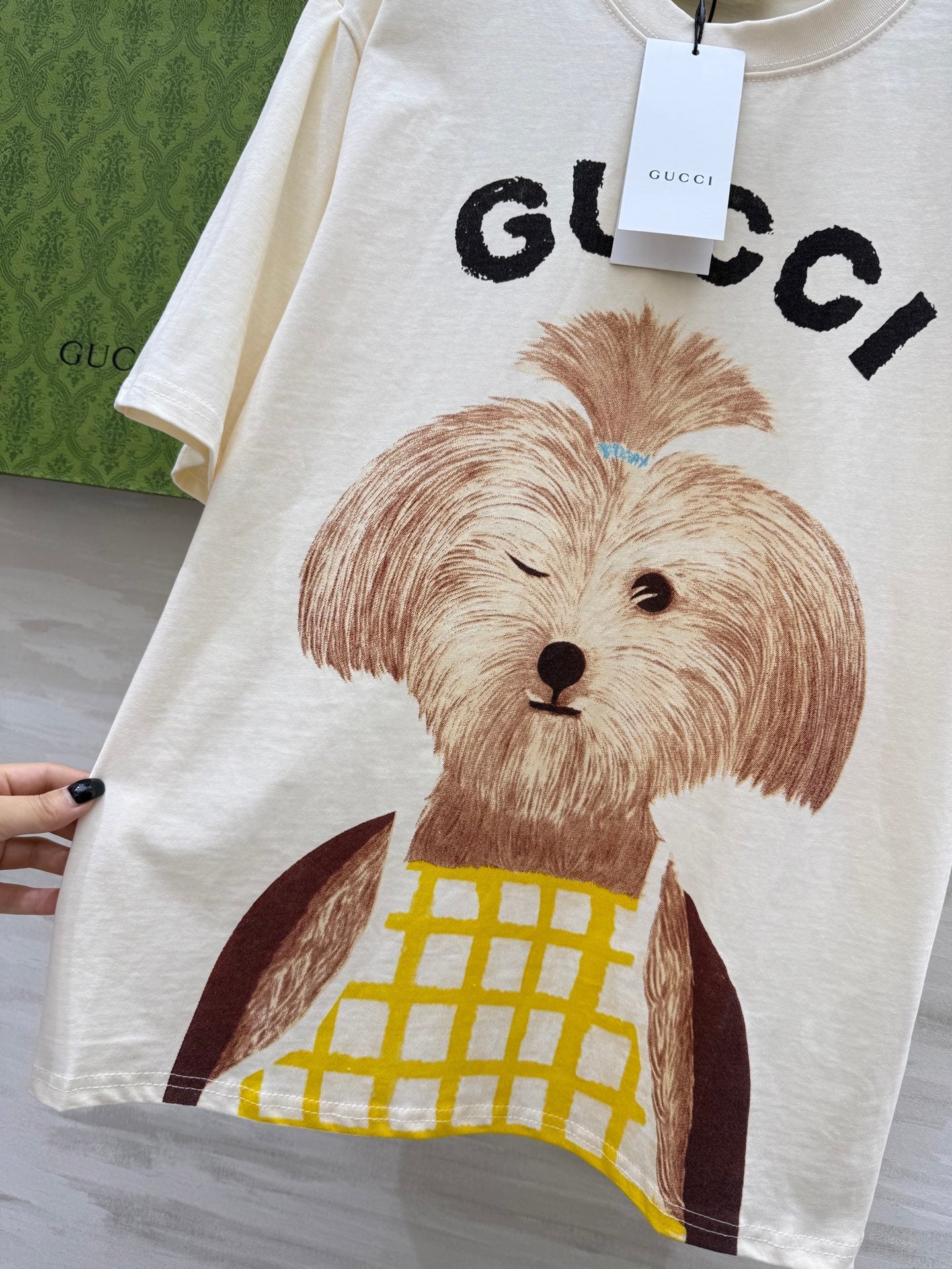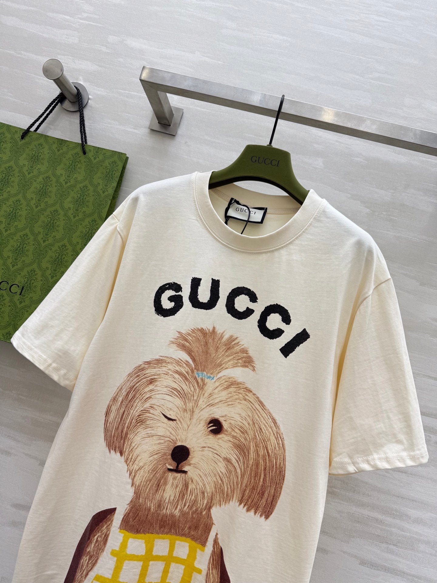 Gucci 25 Puppy Short-sleeved T-shirt Beige Brown Cotton