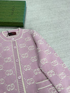 Gucci Knot Jacquard Knitted Cardigan Pink Wool