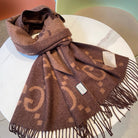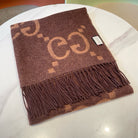 GG JACQUARD PATTERN KNIT SCARF 195 CM WITH TASSELS CHESTNUT BROWN 403749