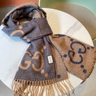 GG JACQUARD PATTERN KNIT SCARF 195 CM WITH TASSELS PIGEON BLUE 403745