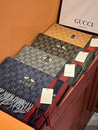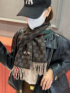 SCARF 180 CM IN CAROB BROWN CASHMERE WITH BEE PATTERN 396475