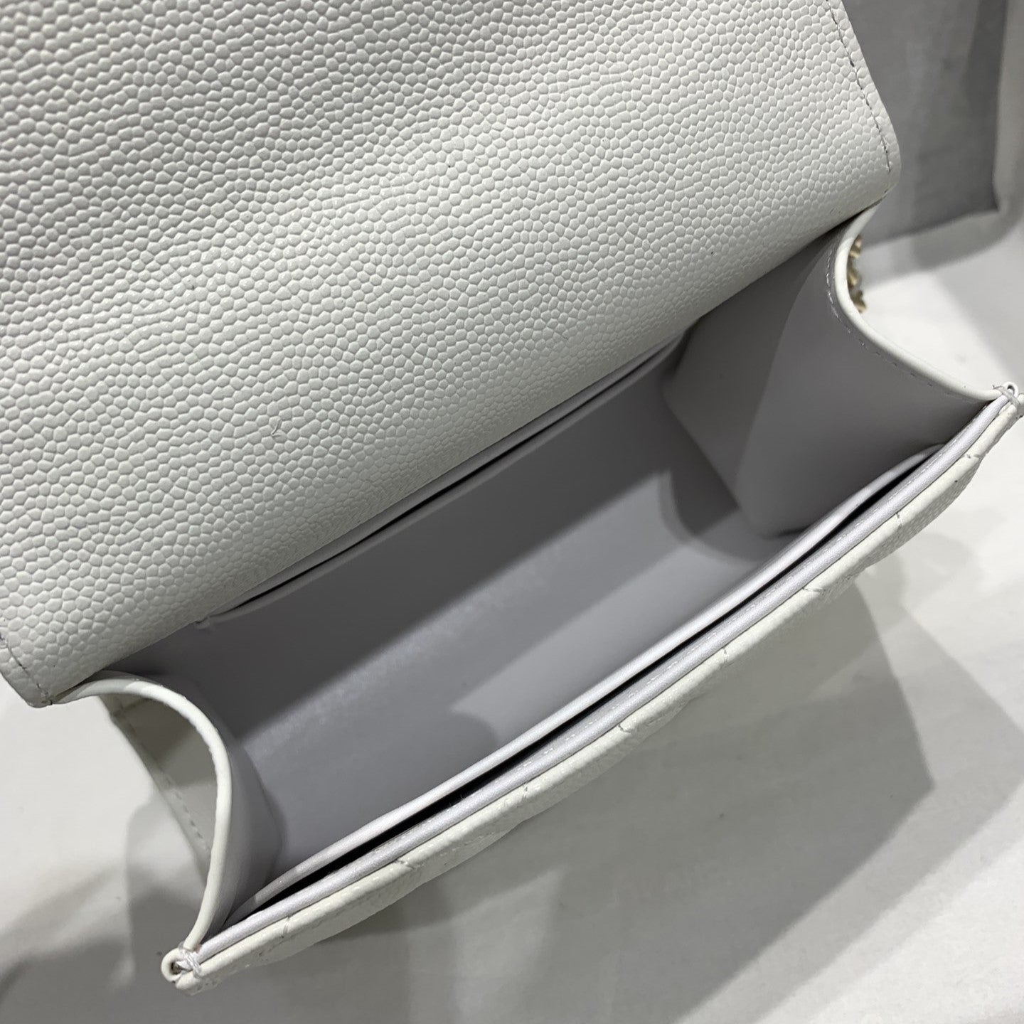23P Flap Bag 15cm White Caviar Gold Hardware