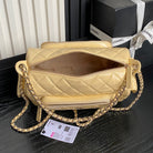 24K Camera Bag Beige Calfskin Gold Hardware