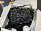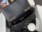 25C Flap Bag 20cm Black Polka Dot Silver Sequin Calfskin