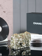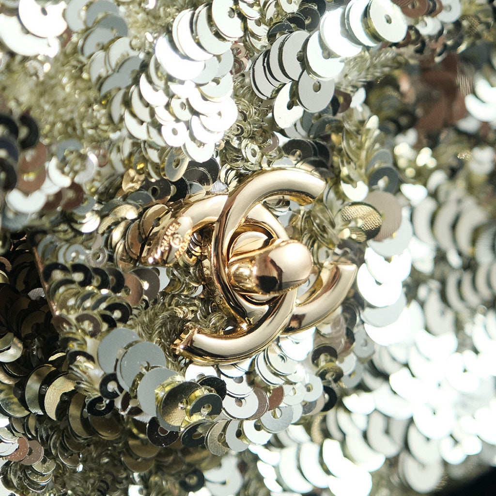 25C Flap Bag 21cm Dense Sequin White Calfskin