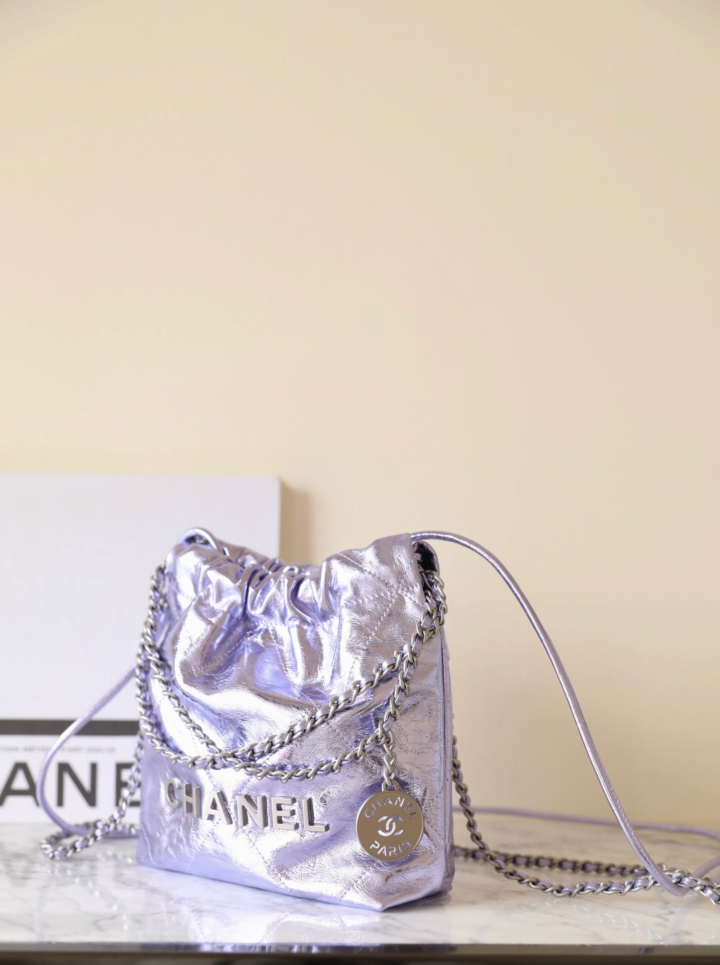 25C Hobo 22 Bag 19cm Violet Metalic Lambskin