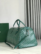BOSTON 50 BAG IN GREEN GOYARDINE CANVAS AND CALFSKIN TRIM