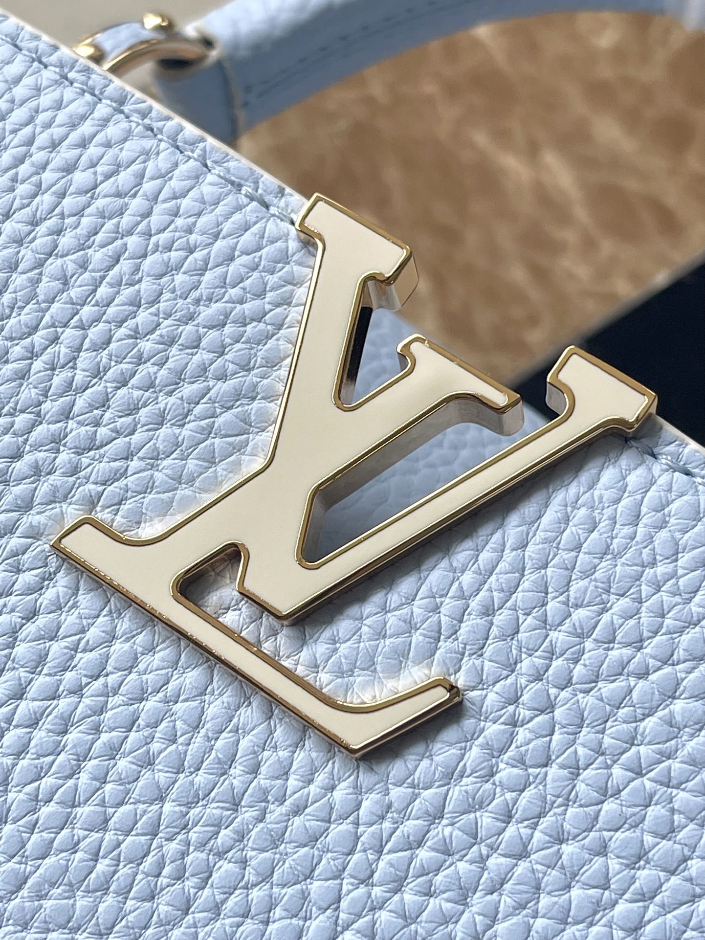 CAPUCINES MINI 21 IN CANDY BLUE TAURILLON GOLD HARDWARE