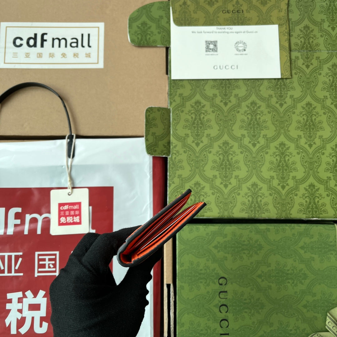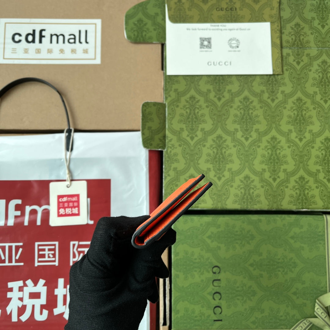 CARD HOLDER 12 IN ORANGE EMBOSSED CALFSKIN