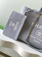 CC 2025 Deauville Tote Bag Light Gray Canvas