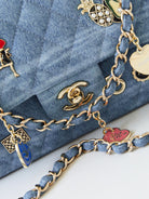 CC 24K Flap Bag 20cm Multi Charm Blue Denim Gold Hardware