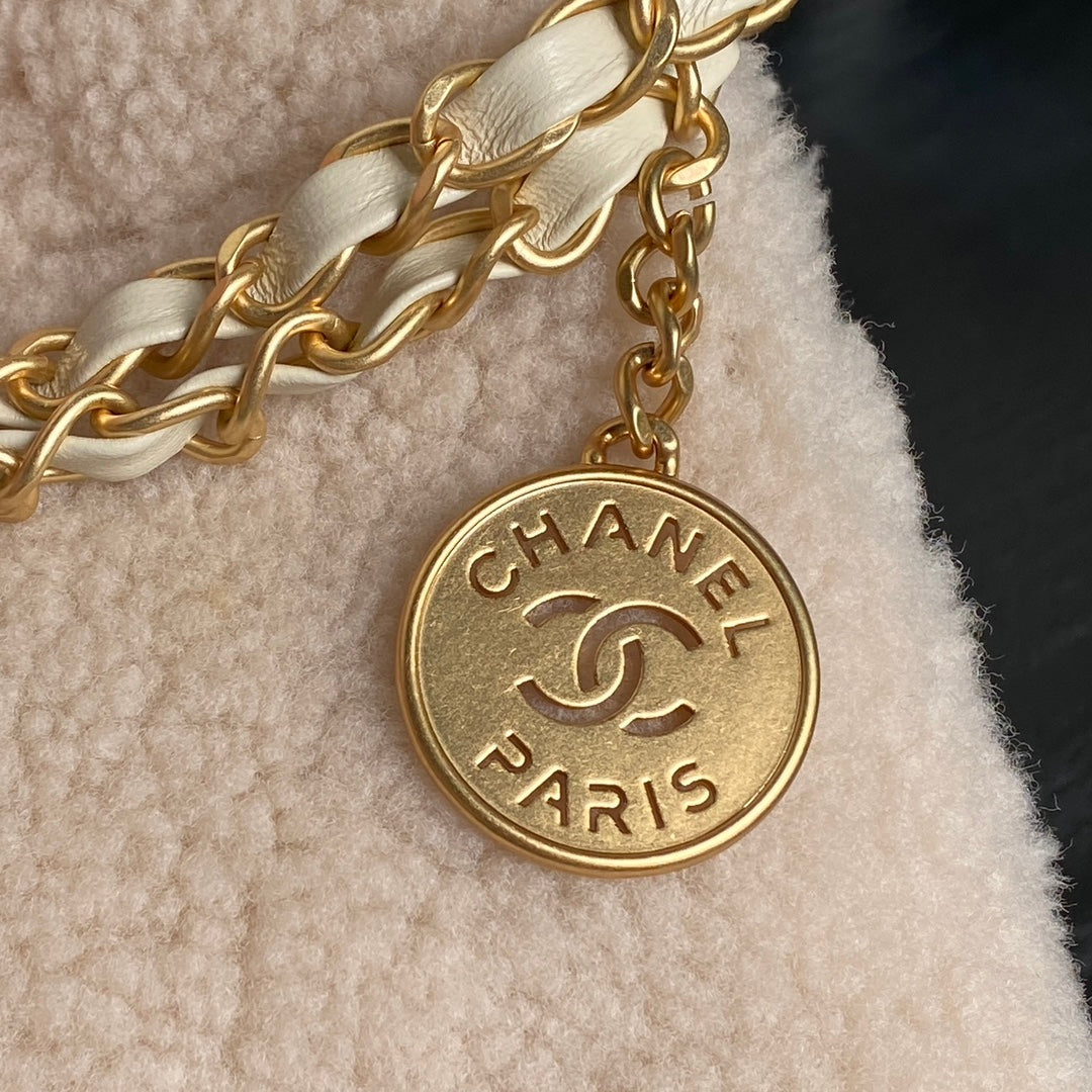 CC 24K Hobo 22 Bag 35cm Beige Wool Fur