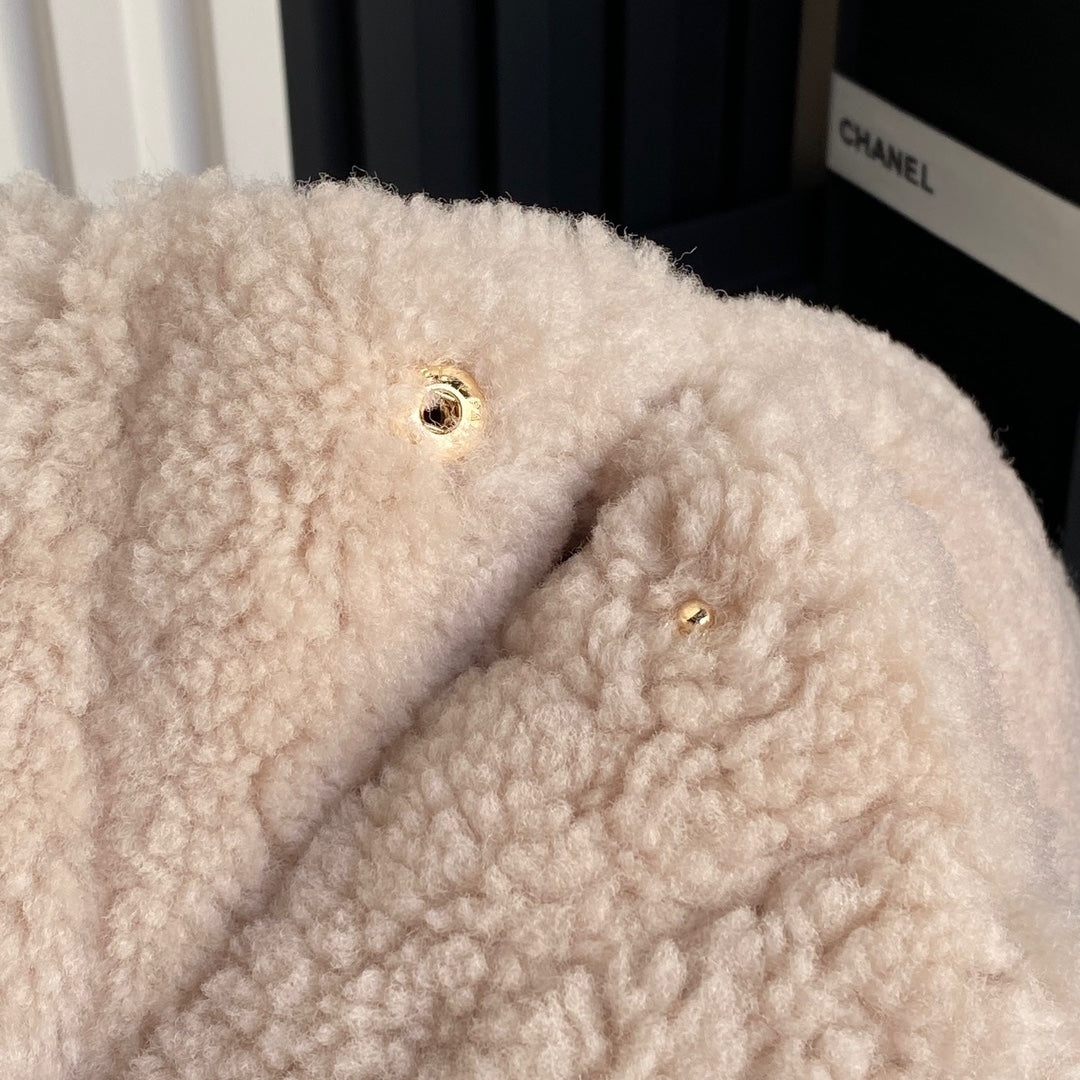 CC 24K Hobo 22 Bag 39cm Beige Wool Fur