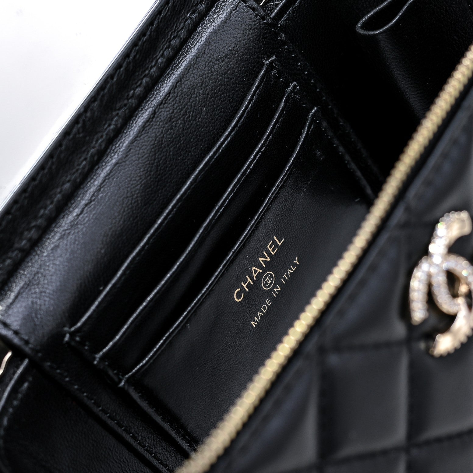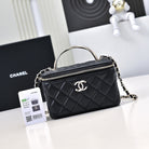 CC 24K Vanity Top Handle 17cm Black Lambskin Silver Hardware