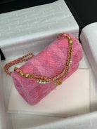 CC 24P Mini Flap Bag 20cm Pink Tweed Pearl Chain Gold Hardware