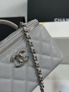 CC 25P Vanity Case 17cm Light Gray Leather Silver Hardware 243466