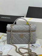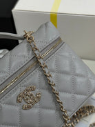 CC 25P Vanity Case 19.5cm Light Gray Calfskin Heart Rhinestone 243610