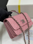 CC 25P Wallet Woc Handle 17cm Pink Pastel Leather Silver Hardware 243439