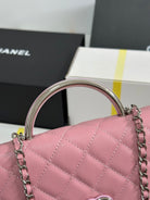 CC 25P Wallet Woc Handle 19cm Pink Pastel Leather Silver Hardware 243448