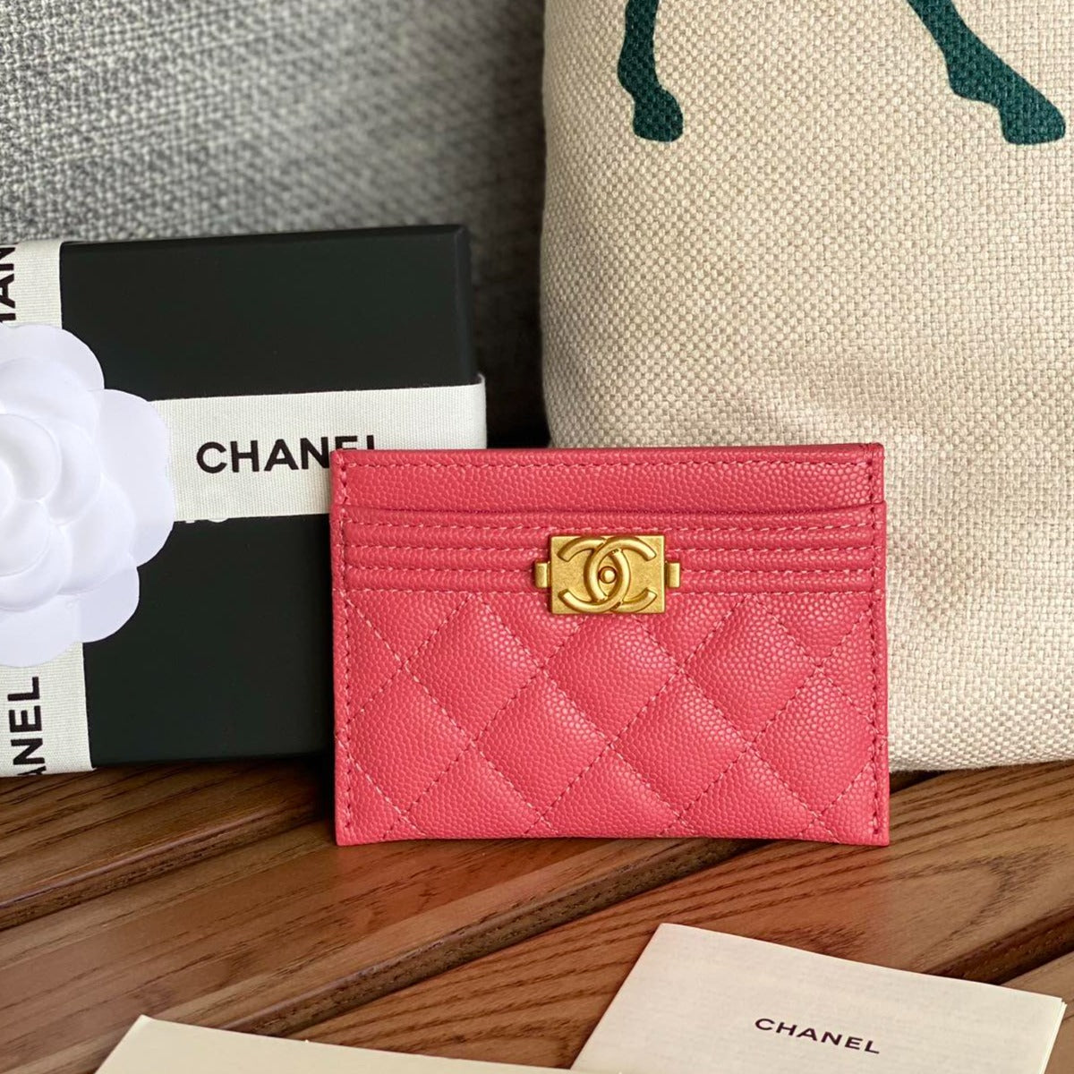 cc boy 11cm card holder red caviar gold hardware