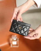 CC CARD HOLDER 11 BLACK CALFSKIN GOLD ICON