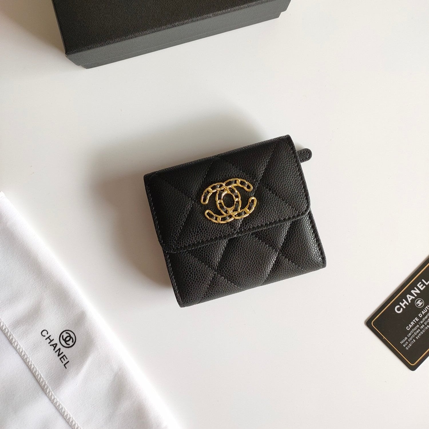 CC SQUARE PURSE 12 BLACK GRAINED CALFSKIN GOLD ICON