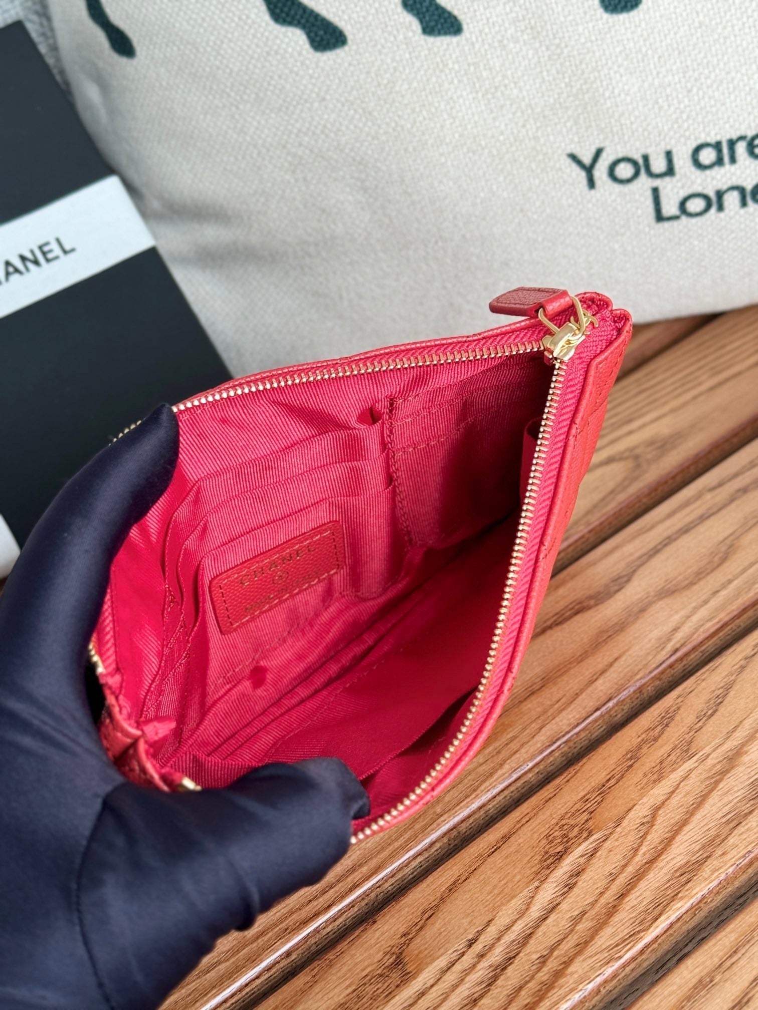 cc zipped wallet 20cm red quilted caviar gold hardware