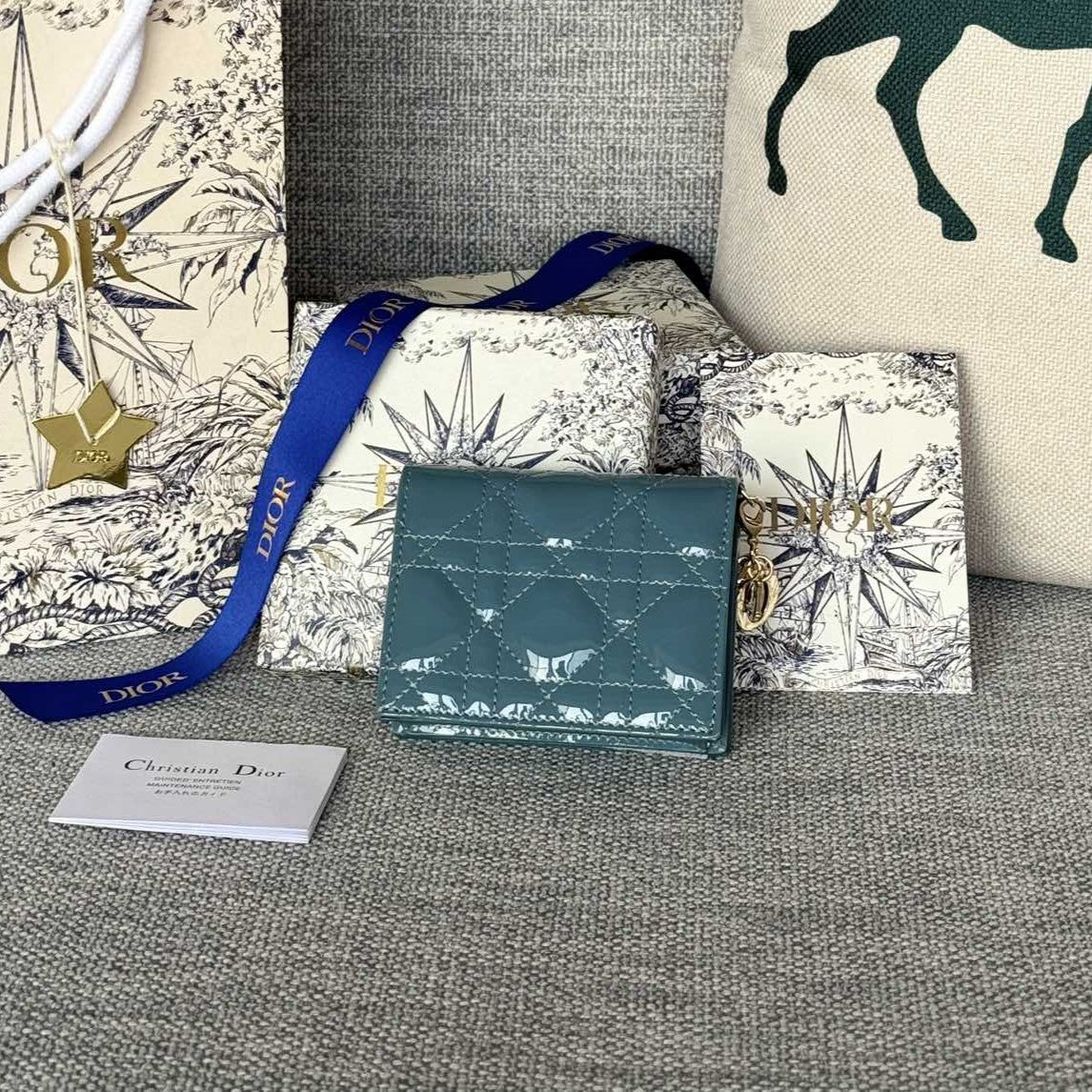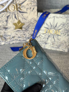 CD Caro 11cm Compact Wallet Shiny Teal Calfskin