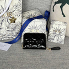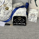 CD Logo Caro 11cm Compact Wallet Shiny Black Calfskin