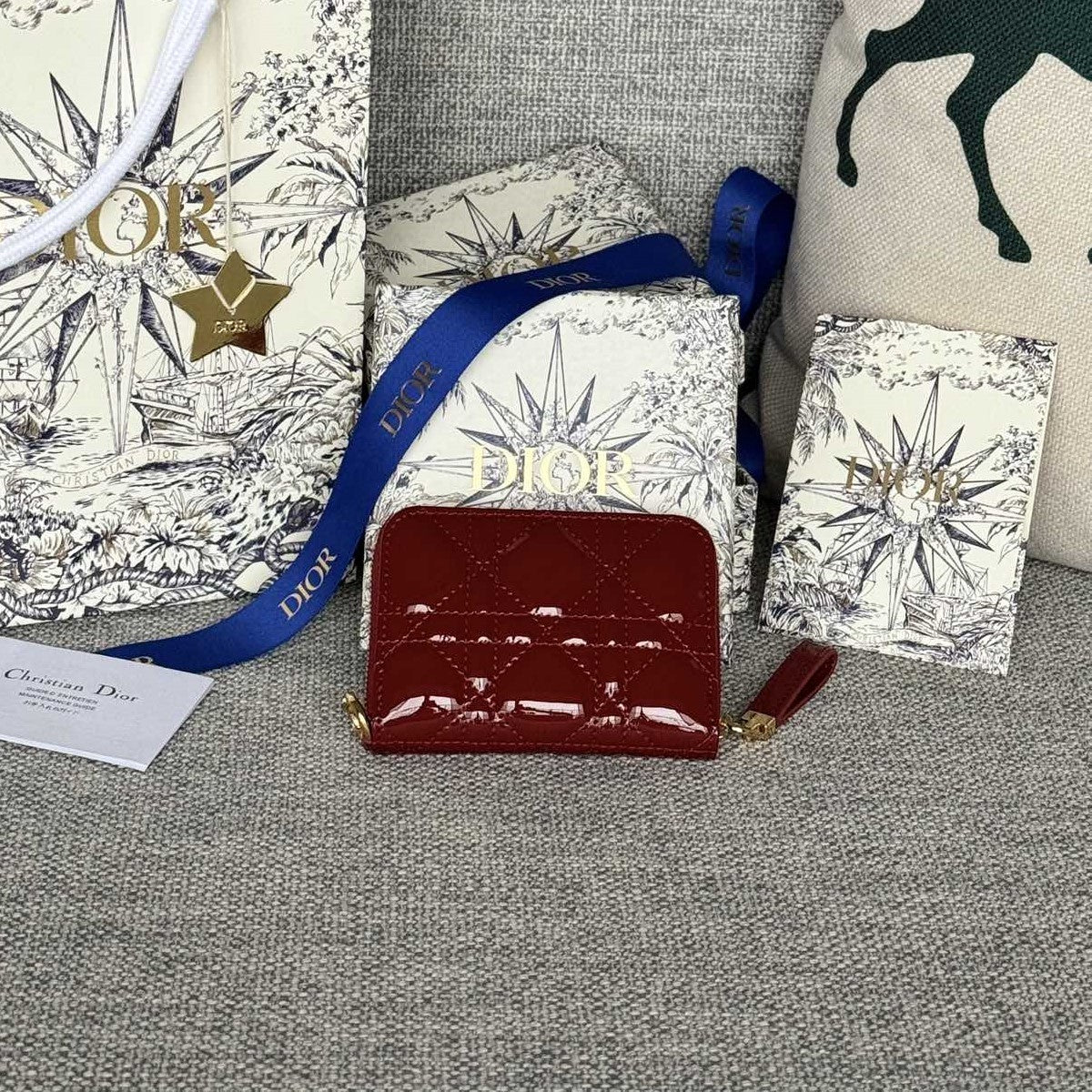 CD Logo Caro 11cm Compact Wallet Shiny Red Calfskin